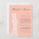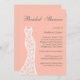 Une robe de mariée vintage délicate et en dentelle habille cette douce invitation à la douche nuptiale pêche. Si d'autres éléments de coordination sont nécessaires, contactez-nous à l'adresse prettyfancyinvites@gmail.com avec votre demande.