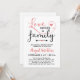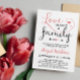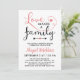 Baby shower d'adoption blanc et corail rose avec les coeurs mignons. Une invitation à la douche d'adoption rose et blanc corail avec Amour fait une famille dans un design de typographie charmant.
