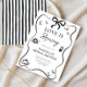 Célébrez la future mariée avec cette élégante invitation "L'amour brasse" Black Bow Bridal Shower! Conçue avec un arc en satin noir chic, des tons doux et neutres, et des détails subtils d'inspiration café, cette invitation mélange l'élégance moderne avec une atmosphère de café confortable. Idéal pour une somptueuse douche nuptiale, un brunch ou un tea party. Personnalisez facilement le texte avec les détails de votre événement et faites-le vous-même.