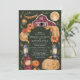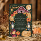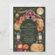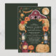 Cette invitation de mariage enchanteresse présente une grange rustique sous une pleine lune lumineuse, entourée de florales automnales, de citrouilles et de lanternes vintage. Le fond vert foncé et les tons terreux chauds créent une atmosphère cosy, parfaite pour un mariage champêtre d'automne. Ce design allie magnifiquement le charme d'une ferme rustique à l'élégance d'une célébration en soirée, ce qui en fait un choix idéal pour les couples qui aiment la chaleur de la saison.