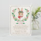 Un classique, lapin d'aquarelle utilisant une couronne de fleur et encadré avec une guirlande florale assortie. Une invitation élégante de Pâques à une chasse à oeufs.