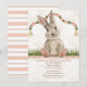 Invitation de petit lapin moelleux en pêche, ivoire, beige et vert sauge. Utilisez pour une baby shower, révélation de sexe, anniversaire, Pâques et plus.