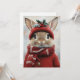 Une charmante illustration sur le thème de l'hiver d'un adorable lapin vêtu d'un manteau rouge confortable, d'une écharpe assortie et d'un chapeau tricoté orné de houx et de baies. Les grands yeux brillants du lapin ajoutent une touche de fantaisie, capturant la joie et la chaleur de la saison des fêtes. Entourée de neige qui tombe doucement, cette scène charmante incarne la magie de l'hiver, ce qui la rend parfaite pour les salutations de fête ou la décoration saisonnière.