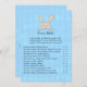 Un lapin lapin bronzé au-dessus du titre de jeu avec arrière - plan de Jacquard en diamant bleu. Modèles créés pour vous. Il s'agit d'un jeu Over ou Under baby shower.