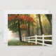 Les belles invitations de mariage de paysage de paysage d'automne avec la chute part sur les arbres dans une forêt avec une barrière en bois blanche. Ce sont de belles invitations de mariage de nature, particulièrement pour un mariage de automne. Ajoutez juste votre propre faire-part de mariage exprimant au modèle.