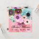 Élégantes roses et anémones blanches et bleues sarcelle sur fond rose avec motifs damassés. Ce design classe et unique est parfait comme faire-part de mariage, cartes de table, cartes de sauvegarde de date, cartes de remerciement, lavages de mariée, anniversaires de 16 ans, fêtes, fêtes de fiançailles, ou presque n'importe quel événement que vous souhaitez !