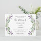 Un arrière - plan blanc décoré de fleurs de lavande et de verdure d'eucalyptus. Personnalisez et vos noms et détails. Retour : ajoutez l'URL de votre site Web mariage au code QR pour plus de détails et/ou RSVP.