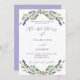 Un arrière - plan blanc décoré de fleurs de lavande et de verdure d'eucalyptus. Personnalisez et vos noms et détails. Retour : lavande, arrière - plan violet.
