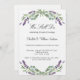 Un arrière - plan blanc décoré de fleurs de lavande et de verdure d'eucalyptus. Personnalisez et vos noms et détails.