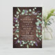 Ce faire-part de mariage à charpente fleurie en lavande rustique est parfait pour une mariage extérieure simple et élégante. Le design floral présente des feuilles d'eucalyptus aquarelle et de la verdure avec des sprigs de fleurs sauvages violets sur l'arrière - plan en faux bois.