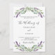 Un arrière - plan blanc décoré de fleurs de lavande et de verdure d'eucalyptus. Personnalisez et vos noms et date/lieu. Retour : lavande, arrière - plan violet. Ajoutez les détails. Votre code QR vers votre site Web mariage pour plus de détails et RSVP