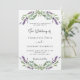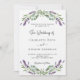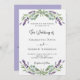Un arrière - plan blanc décoré de fleurs de lavande et de verdure d'eucalyptus. Personnalisez et vos noms et détails. Retour : ajoutez l'URL de votre site Web mariage au code QR pour plus de détails et/ou RSVP.