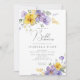 Invitation Lavande Violet Jaune Lavande Douche nuptiale. Elégante invitation à la douche nuptiale fleurie aquarelle avec de belles fleurs d'aquarelle peintes à la main dans les tons violet et jaune pour la douche nuptiale printemps, été et automne. Correspondant motif floral dans le dos. Vous pouvez personnaliser le libellé, le style de police, la couleur et la taille devant et derrière l'invitation. Éléments correspondants disponibles.