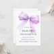 A white background, decorated with a lavender colored large bow. Personalize and add a name and party details.