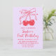 Invitation Lavender & Red Bow Cherry Fruit 1st Birthday Party