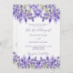 Un arrière - plan blanc décoré de fleurs de lavande. Personnalisez et vos noms et détails. Retour : ajoutez l'URL de votre site Web mariage au code QR pour plus de détails et/ou RSVP.