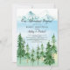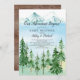 Notre aventure commence garçon invitation baby shower avec de belles aquarelles montagnes & arbres. Retournez notre invitation de douche pour voir un bois marron coordonné pour une touche spéciale supplémentaire.