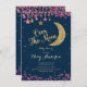 Sur la Lune Invitation Baby shower arc-en-ciel pour une fille ou un garçon avec une lune, des étoiles et une belle parties scintillant faux or.