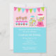 Commencez votre fête d'anniversaire douce de fille outre de la droite avec notre invitation douce d'anniversaire de enfant de festins comportant un arrière - plan de pois de bleu de turquoise et un rose, bannière verte et bleue d'anniversaire avec une machine de boule de gomme, sucrerie de lucette et un petit gâteau. Mignon pour une première fête d'anniversaire de filles, la fête d'anniversaire de sucrerie, la fête d'anniversaire de bonbons ou la fête d'anniversaire d'été. Visitez notre magasin pour regarder d'autres invitations mignonnes de fête d'anniversaire et en assortissant merci des notes, des autocollants et des timbres-poste. Conceptions de Babystar de ©