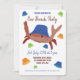 Jetez une soirée épique sur la plage ou une fête d'anniversaire sur le thème de l'océan avec ces invitations amusantes qui présentent une illustration d'un crabe de bande dessinée habillé d'un casquette de plage de style seau bleu ainsi que des accents de casquette de plage coloré. Utilisez les champs modèle pour remplir facilement tous les détails de votre fête. Ce design amusant fonctionne aussi bien pour les enfants que pour les adultes.