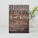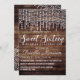 Les planches en bois brunes rustiques élégantes, chics, et de pays et le diamant accrochant blanc s'allume, bonbon 16 invitations de partie de célébration d'anniversaire. Cette conception classique et sophistiquée est parfaite pour la fille chique, à la mode, et élégante d'anniversaire. Personnalisez avec votre propre message sur l'avant et une initiale customisée de monogramme sur le dos. Toute la conception d'impression de photo.