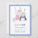 Invitation bleue mignonne d'anniversaire de lapin pour vos jumeaux comportant les lapins tirés par la main adorables de garçon et de fille.