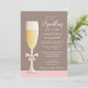 Invitez votre famille et amis à rencontrer votre nouveau bébé doux à un "Sip et à voir" la maison ouverte avec cette invitation d'amusement comportant une cannelure de champagne "de scintillement" de pétillant, attachée joli avec un petit arc rose. Une grande manière d'avoir une date et heure d'ensemble pour présenter le bébé à chacun immédiatement. Perfectionnez pour un deuxième enfant ou au lieu d'un baby shower traditionnel. Grand pour des grands-parents aussi !