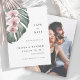 Donnez vie à votre vision mariage de rêve tropical avec ce mariage unique et magnifique Save the Date faire-part. Il est doté d'un trio d'orchidées roses délicates et d'une belle feuille de monstère aux aquarelles douces placées sur le devant de la carte. Le design est à la fois simple et élégant, avec un look minimaliste dynamisé par les éléments botaniques tropicaux. Ce design est un choix merveilleux pour les mariages côtiers, les mariages de destination ou même les mariages de ville qui utilisent un thème tropical magique. Le dos de la carte a un modèle texte pour inclure votre photo désirée. Personnalisez le modèle texte avec vos informations de mariage et une photo de portrait au dos.