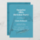Thème de pêche, surprise personnalisée (ou pas) invitation de fête d'anniversaire pour lui. Eau de mer bleu couleur arrière - plan avec des images de pêche et de poisson d'eau salée et texte blanc en deux tailles. Le titre, le type de parti et le nom de l'honneur sont en gros caractères. Customisez facilement pour tout événement. Ce design a un thème masculin, mais fonctionnera pour n'importe qui. Allez dans la zone personnaliser et changez les polices si vous le souhaitez.