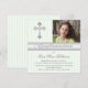 Invitez tous vos amis et famille à la confirmation de votre fille avec ces pur et assez blanc et pâle - invitation rayée verte de confirmation avec une croix de gris argenté et un secteur de modèle pour que vous téléchargiez la photo de votre fille dans. Le choix de papier et tous texte est personnalisable. Le **** NOTENT SVP que la croix, la bande centrale, et tout texte est imprimée à plat, sans l'effet augmenté ou biseauté. Il apparaîtra juste de cette façon. Si vous avez besoin de n'importe quels autres articles dans ce style de conception, tel que merci des cartes, carte de remerciements de photo, ou tous les autres articles rendre ce jour très spécial extra spécial, envoyez svp votre demande à niteowlstudio@gmail.com.