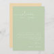 Cette lettre d'accueil et ce programme mariage présente une police manuscrite pointue et un design moderne minimaliste avec une combinaison de couleurs pastel vert, jaune et blanc éclatante. Modifiez facilement le libellé *most* de cette chronologie. Ce programme d'accueil mariage est parfait pour vos évènements mariages de printemps, de jardin et d'été.