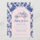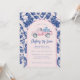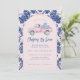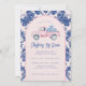 Cette invitation à la collecte de fonds Christmas Toy Drive a un design primitif et préppant, avec un camion rose et des cadeaux bleus et blancs à l'arrière. Il y a une bordure en arc bleu et rose vif autour du bord. L'avant et l'arrière ont un motif de damas de coordination.