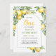 Lemon citrus 1st birthday invitation, drawn in soft pastel colours in a watercolor style.