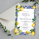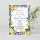 Pretty yellow lemons and blue and white Mediterranean tiles with white watercolor florals Bridal shower invitation. All fields are editable so you can enter your information.