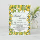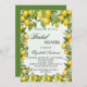 Un arrière - plan vert à l'eau. Décoré de citrons jaunes et de feuillage vert. Personnalisez et ajoutez un nom et des détails du parti. Le nom est écrit avec un script de style écrit à la main. Retour : arrière - plan vert