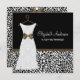 Faites une déclaration de mode avec ces invitations empreintes de léopard nuptiales en noir et blanc à la mode avec une robe mariage moderne sur un cintre décoré d'un ruban marron carafe ceinturé dans un joli arc. Cette invitation poster de animal chic peut être personnalisée en ajoutant le nom de la mariée à être, ses couleurs mariages, et les informations sur le parti dans les zones de texte personnalisables du modèle. Ce invitation élégant fait partie de la collection de couleurs de la mode d'automne 2013. Impression plane, pas ruban réel.