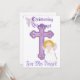 Les bénédictions de baptême de mon ange. Une transformation spirituelle céleste. Croix violette de Jésus prenant la tête de la sainteté de l'occasion. Un papillon violet symbolisant la transformation de l'âme. Personnalisez pour une entrée dorée dans cet événement spécial. Personnalisez.