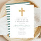 Stripes vertes personnalisées Bois Croix Religieuse Garçon Première Communion Invitation