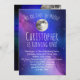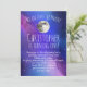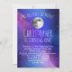 Adorable invitation de fête de premier anniversaire pour le garçon ou la fille qui en tourne un. Purple Outer Space Stars Over the Moon Birthday Party Invitation pour garçon ou fille! Pleine lune céleste violet thème lunaire Douche Invitation à l'aquarelle artistique pleine lune, et bel espace extérieur de nébuleuse violet et bleu peint encre aquarelle avec étoiles de nuit sur un ciel de nuit cristallin. Parfait pour un premier voyage autour de l'espace, lunaire, céleste ou moderne célébration du soleil. La nébuleuse arc-en-ciel élégante contraste avec les constellations géométriques et la galaxie spatiale. Idéal pour le fan astrophysicien en astronomie qui aime la lune et l'univers cosmique étoilé.