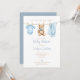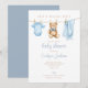 This cute baby shower invitation features blue baby boy's clothes on a clothesline and can be personalized with your details set in stylish typography. Designed by Thisisnotme©