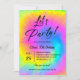 This trendy rainbow tie dye invitation features bright colors and your custom text. Use the template form to add your details. The Customize feature allows you to change the font style, and add or delete text.
