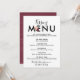 Ce menu de baiser à lettre fleurie marron est parfait pour une réception de mariage d'automne. Le design présente un petit bouquet de fleurs bordeaux et pêche sur une typographie grasse pour un look moderne et élégant. Le dos présente des coups de pinceau aquarelle marsala.