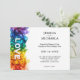 Découvrez l'esprit de votre histoire d'amour avec cette faire-part de mariage vivante et authentique. Le design, parfait pour une disposition horizontale, est une célébration de la fierté et de l'unité, avec une cascade de coups de pinceau infusés d'arc-en-ciel sur le sommet. Le mot "AMOUR" est audacieusement centré sur des lettres blanches croustillantes, servant de phare de votre joie. Sous l'oeuvre, vos noms sont élégamment scénarisés. L'avant de la carte est soigneusement conçu pour fournir tous les détails essentiels pour vos invités. La date de votre mariage est affichée en évidence, ce qui garantit qu'il s'agit d'une date qu'ils n'oublieront pas. Sous la date, vous pouvez customiser la carte avec toutes les informations dont vos invités ont besoin, y compris l'heure de la journée, le lieu enchanteur, et une note sur la réception joyeuse qui suivra. L'envers de l'invitation continue cette poésie visuelle. Une version plus petite de l'oeuvre est placée dans le coin, laissant suffisamment d'espace pour une touche personnelle. Cet espace est parfait pour ajouter une photo préférée de vous deux, ainsi qu'un message sincère, une citation significative, ou une note spéciale à vos invités. Cette invitation est plus qu'une simple carte, c'est une belle représentation de votre amour, conçu pour donner le ton parfait pour votre journée spéciale.