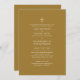 Célébrez le sacrement du mariage saint avec nos invitations de masse nuptiale mariage catholique. Notre collection d'invitation (ci-joint) présente divers thèmes de couleur et de design graphique qui symbolisent la foi et l'engagement du couple envers Dieu, ainsi que leurs couleurs mariages et leur esthétique. Notre modèle d'invitation comprend des modèles de texte des deux côtés, vous permettant d'ajouter le nom des parents ou des hôtes, les détails de la cérémonie, les détails de la réception, RSVP, le registre des cadeaux, et un petit nombre de détails du programme. Nos invitations sont disponibles à la fois en types de cartes et de papier, budget et premium. Vous avez également une option de téléchargement numérique instantané. Avec l'option de téléchargement numérique, vous pouvez imprimer les invitations de mariage CAtholic vous-même ou les envoyer par SMS ou e-mail. Faites de votre jour de mariage une fête spéciale avec notre faire-part de mariage catholique qui représente votre foi, votre amour et votre engagement envers l'autre. ________________________________________________ Vous pouvez également ajouter une petite ligne de verset biblique, de proverbe ou d'écriture favoris à l'arrière de l'invitation. Voici quelques suggestions : "L'amour est patient, l'amour est gentil. Il ne fait pas d'envie, il ne se vante pas, il n'est pas fier." - 1 Corinthiens 13:4 "C'est pourquoi Dieu s'est uni, ne laisse personne se séparer." - Marc 10:9 "J'ai trouvé celui que mon âme aime." - Chant de Salomon 3:4 "Avant tout, aimez-vous profondément, parce que l'amour couvre une multitude de péchins." - 1 Pierre 4:8 Faites confiance au Seigneur avec tout votre coeur et ne penchez pas sur votre propre compréhension." - Proverbes 3:5 "Là où vous irez, j'irai, et là où vous resterez, je resterai. Votre peuple sera mon peuple et votre Dieu mon Dieu." - Ruth 1:16 "N'aimons pas les mots ou la parole, mais les actions et la vérité." - 1 Jean 3:18 "Et maintenant ces trois-là restent : la foi, l'espérance et l'amour. Mais le plus grand d'entre eux est l'amour." - 1 Corinthiens 13:13 _____________________________________________________ Or de moutarde jaune foncé, monochrome, simple et uni avec une croix d'or, un design élégant classique avec un libellé traditionnel Nuptial , les noms des parents et les écritures (peuvent être édités) par LeahG.