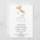 Planifiez votre mariage dans une destination romantique à Rome ou dans tout autre endroit romantique en Italie ? Invitez vos invités avec cette belle invitation avec une carte de l'Italie en or et votre destination personnalisée marquée d'un cœur mobile.