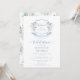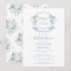 Elegantly refined, this bohemian bridal shower invitation features a delicate crest decorated with blue and white flowers. Accented with modern calligraphy script in a sophisticated light blue tone, this design beautifully captures the essence of a spring or summer bridal shower celebration.