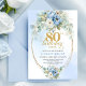 Invitation Light Blue Peony Flowers Gold Frame 80th Birthday