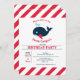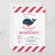 Une invitation mignonne et élégante décrit aussi bien e pour un baby shower mais bien adaptée pour les fêtes d'anniversaire juvéniles. La petite baleine a un dessus rouge et blanc, inférieur et barré de retour. (<a href='http://www.freepik.com/free-vector/birthday-card-with-nautical-elements_886557.htm'>Conçu par Freepik</a>). <br/><br/>Il est facile customiser la carte avec vos mots, options de police, de couleur de police, de papier de forme et choix de six types de papier<br/><br/>Pas exactement que recherchez-vous ? Tous nos produits peuvent être conçus en fonction du client pour répondre à vos besoins à aucun supplément<br/><br/>Contactez-simplement nous chez heartfelthelper@gmail.com. <br/><br/>Produits coordonnés disponibles : Demandez-juste nous !