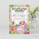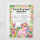 Une jolie licorne rose et magique aux longs cheveux dorés, bleus et roses s'installe dans une forêt remplie de magnifiques fleurs tropicales, vives et colorées. Les fleurs jaune, rose, orange et jaune d'hibiscus et de frangipaniers forment un beau cadre autour de la princesse et un seul colibri s'envole vers sa gauche. L'arrière a la même illustration éclatante que l'avant. Personnalisez les modèles pour convenir à votre fille, petite-fille, filleul, nièce ou soeur anniversaire. Ta petite fille sera ravie.