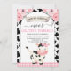 Floral Cow Print Avez-vous entendu le Moos Birthday Invitation Vache mignonne thème ou avez-vous entendu l'invitation d'anniversaire moos pour une petite fille. Le design d'invitation à l'anniversaire de cette jeune fille comprend une jolie vache blanche et noire, un motif audacieux et de jolis roses floraux roses sur un arrière - plan en arc blanc. Cette invitation est une façon mignonne pour les invités invitations à la fête d'anniversaire d'une fille sur le thème de la vache.
